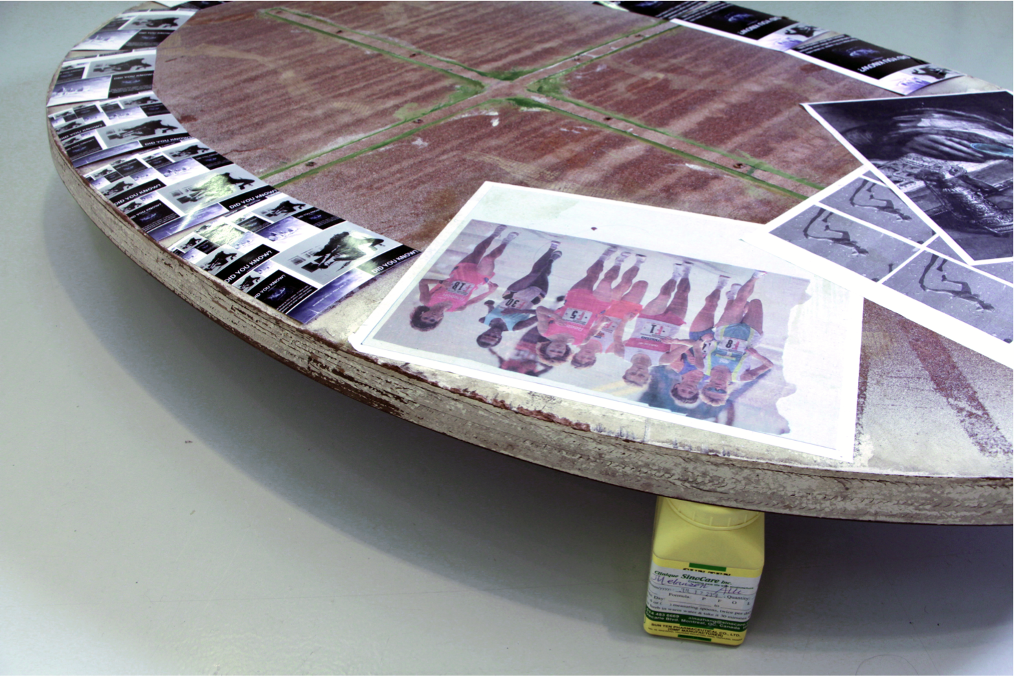 . Framed digital prints on found tabletop. 29 x 40 x 3 in.